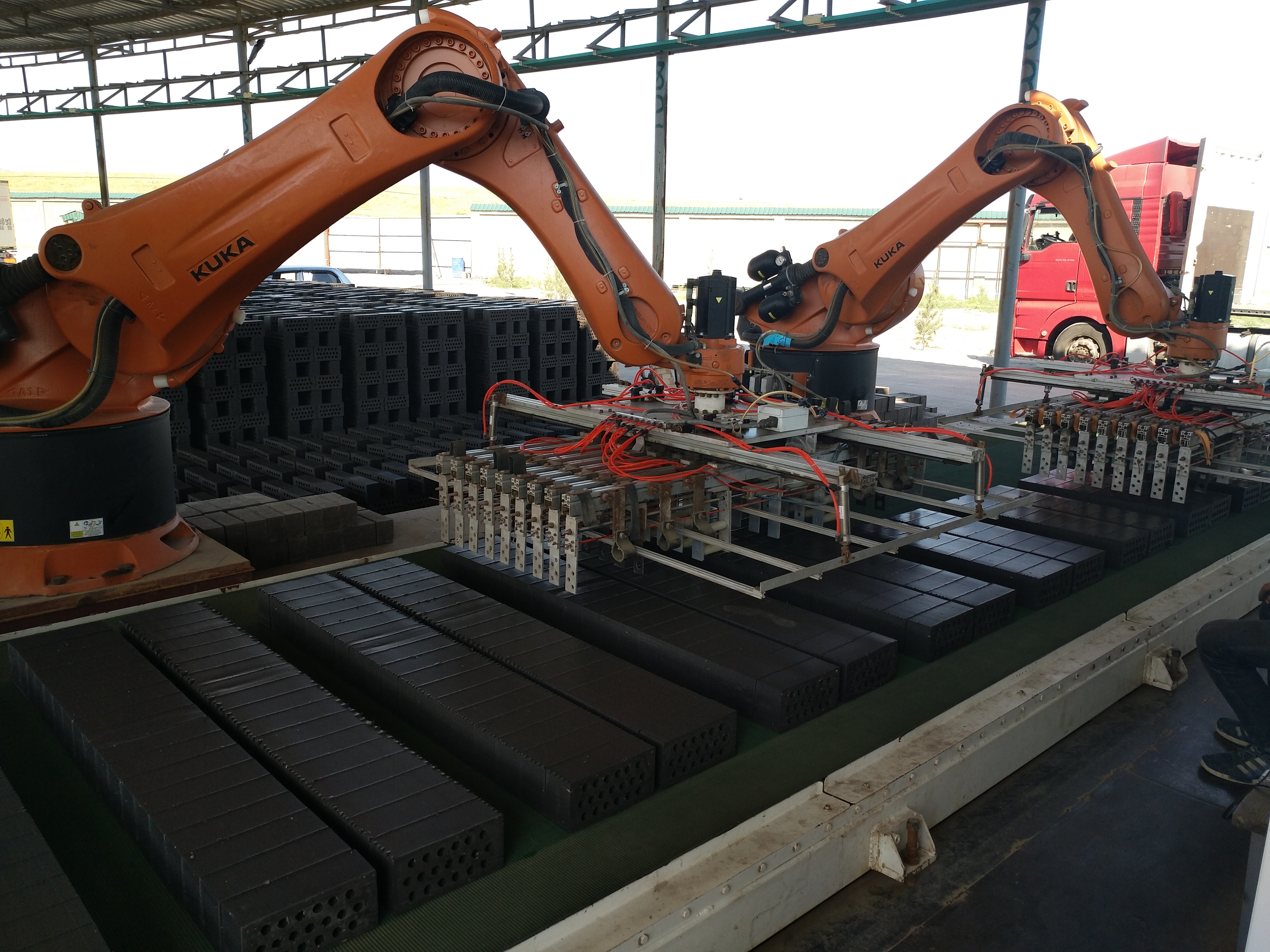 這其中新疆晨光164磚廠的周總,便是其中的受益者。新疆周總以前用5條輪窯燒磚,產(chǎn)量低,用工多,管理困難。南通恒達(dá)公司在17年幫其建造了兩條9.38*160米環(huán)保型移動式隧道窯,并配套機(jī)器人碼坯,一舉解決了產(chǎn)量低和用工多的問題,兩條隧道窯日產(chǎn)60萬,工人僅45人。