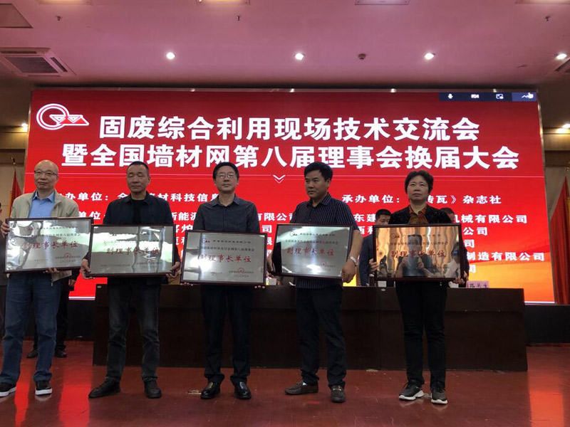 現(xiàn)場(chǎng)進(jìn)行了固廢綜合利用現(xiàn)場(chǎng)技術(shù)交流及全國墻材網(wǎng)第八屆理事會(huì)換屆,南通恒達(dá)公司等5家企業(yè)換屆選舉為全國墻材網(wǎng)第八屆理事會(huì)副理事長(zhǎng)單位并舉行了授牌儀式。公司董事長(zhǎng)崔恒全先生代表南通恒達(dá)公司上臺(tái)接牌。