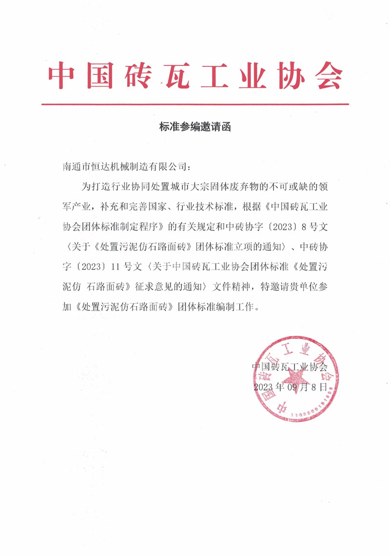 行業(yè)要健康發(fā)展,標(biāo)準(zhǔn)必須先行。再此背景下,2023年10月21-22日,在中國(guó)杭州,中國(guó)磚瓦協(xié)會(huì)及時(shí)的組織了行業(yè)骨干企業(yè),群策群力,制定高質(zhì)量標(biāo)準(zhǔn)。南通市恒達(dá)機(jī)械制造有限公司董事長(zhǎng)崔恒全和技術(shù)總工于銀龍受邀請(qǐng)參加,為標(biāo)注的制定貢獻(xiàn)恒達(dá)力量。
